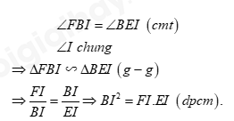 \( \Rightarrow \angle FBI = \angle BEI\) (góc nội tiếp và góc tạo bởi tia tiếp tuyến và dây cung cùng chắn cung \(BE\))
