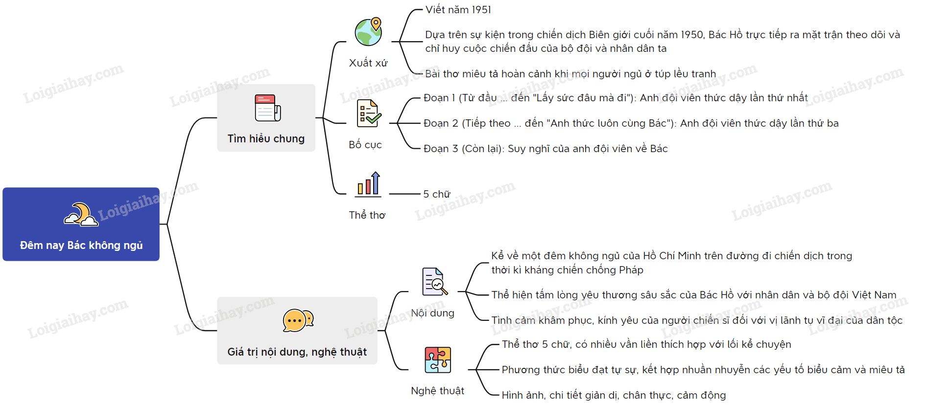 Sơ đồ tư duy bài thơ “Đêm nay Bác không ngủ”: