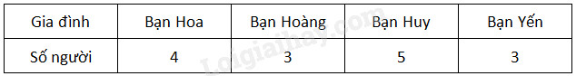 Dưới đây là bảng thống kê số người trong gia đình của bốn bạn :