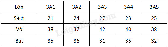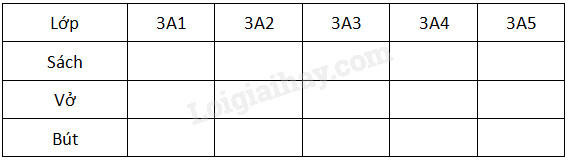 Lớp 3A5 : 38 quyển vở, 32 chiếc bút, 25 quyển sách.