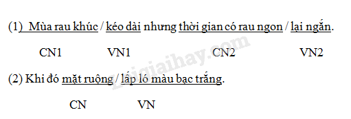 (1) Mùa rau khúc kéo dài nhưng thời gian có rau ngon lại ngắn. (2) Khi đó mặt ruộng lấp ló màu trắng bạc.