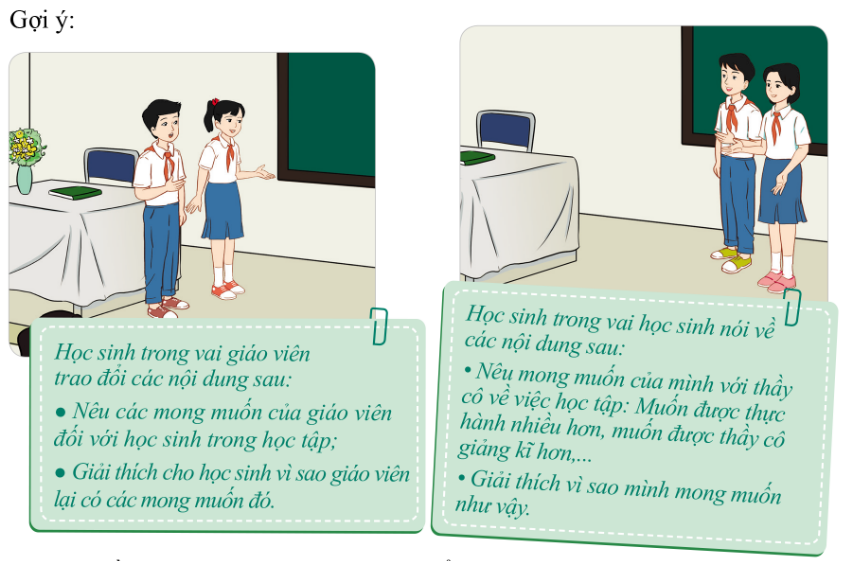 * Đóng vai giáo viên và học sinh trao đổi với nhau.