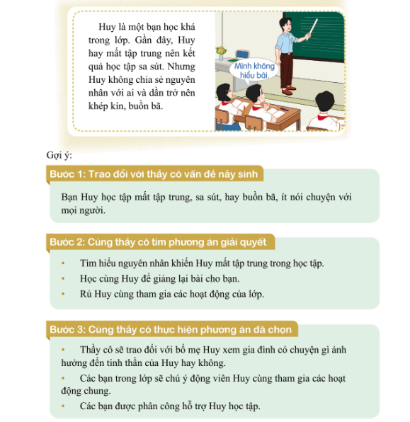 + Thầy cô trao đổi với bố mẹ Huy để tìm hiểu nguyên nhân sâu xa.