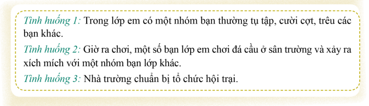 * Vận dụng các cách hợp tác với thầy cô và các bước giải quyết vấn đề nảy sinh để xử lý các tình huống sau: