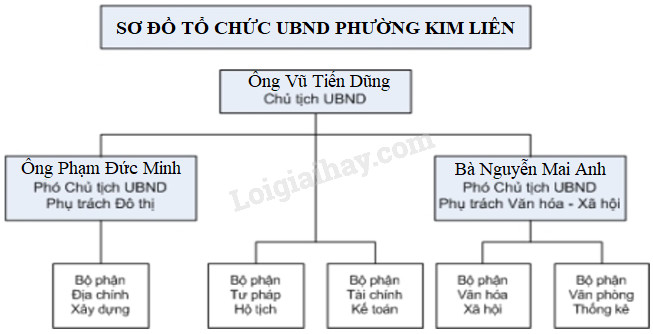 Em hãy tìm hiểu bộ máy tổ chức của Ủy ban nhân dân phường (hoặc xã) nơi em ở và ghi thành sơ đồ về hệ thống tổ chức.
