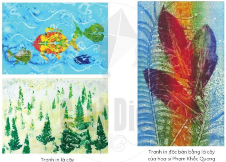 Cách thực hiện: Dùng lá cây yêu thích, nhúng màu phù hợp và in lên giấy.