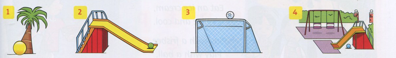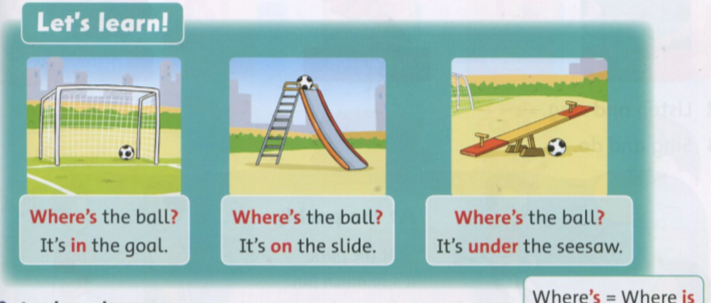 Quả bóng ở đâu? Nó ở trên cầu trượt.