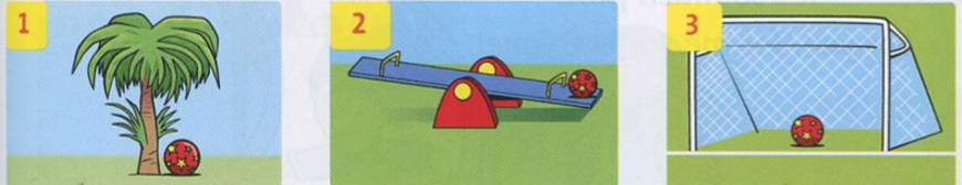 Quả bóng ở đâu? Nó ở dưới cầu bập bênh.