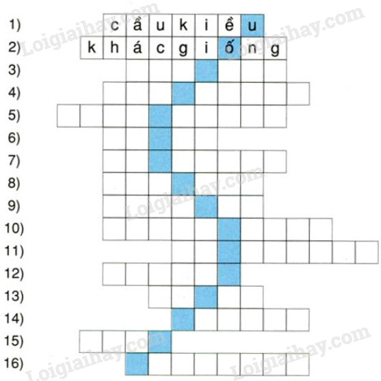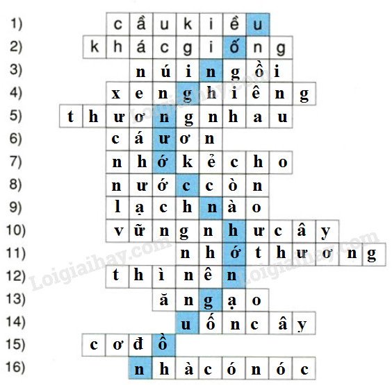 Viết các chữ vừa điền được trong các câu ở bài tập 2 vào các ô trống theo hàng ngang để giải ô chữ hình chữ s. (Xem M : dòng 1,2):