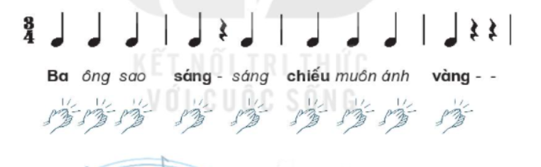 Vận dụng cách vỗ đã học ở bài Dàn nhạc trong vườn, hãy cùng đọc lời ca và vỗ tay theo hình tiết tấu dưới đây:
