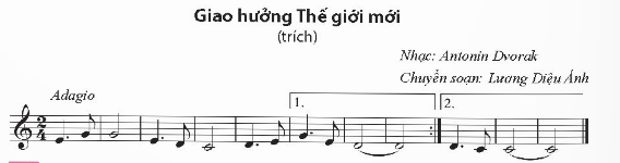 Chỉ ra các kí hiệu đã học (loại nhịp, nhịp độ, cao độ, trường độ, các kí hiệu khác) trong Bài thực hành số 2 – Giao hưởng thế giới mới