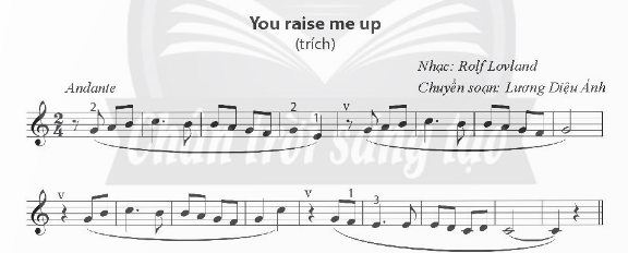 Chỉ ra các kí hiệu đã học (loại nhịp, nhịp độ, cao độ, trường độ, các kí hiệu khác) trong Bài thực hành số 2 – You raise me up.