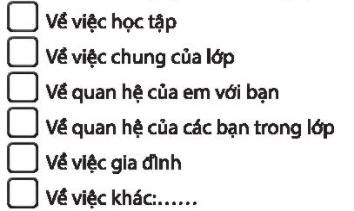 Đánh dấu X vào ô trước những nội dung em muốn chia sẻ với thầy cô.