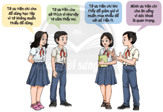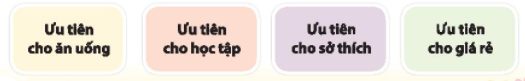 Theo em, các bạn đã đưa ra những lí do nào để xác định khoản chi ưu tiên của mình. Sắp xếp trật tự ưu tiên cho các lí do sau. Chia sẻ lí do em ưu tiên mua những món đồ cho mình.