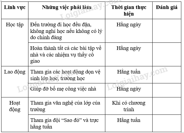 • Rèn luyện bản thân theo kế hoạch đã lập.