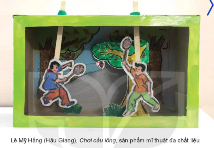 Sản phẩm của em thể hiện hoạt động chơi cầu lông mà chúng em thường chơi mỗi giờ giải lao hoặc học thể dục ở trường