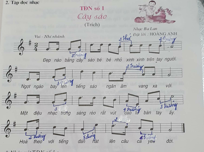 Hãy chỉ ra các quãng 2, 3, 4, 5 trong bài hát TĐN số 1.