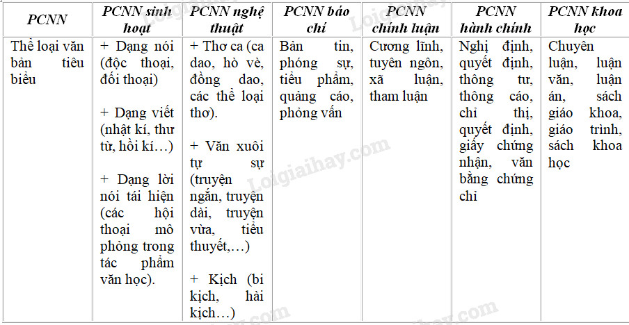 Phong cách ngôn ngữ và các thể loại văn bản tiêu biểu