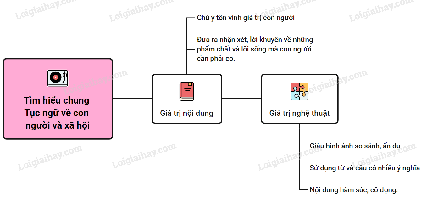 Sơ đồ tư duy Tìm hiểu chung Tục ngữ về con người và xã hội: