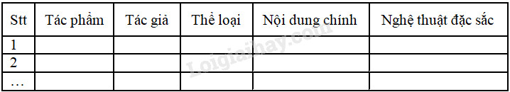 1. Hệ thống hóa các tác phẩm đã học trong chương trình Ngữ Văn lớp 12 vào bảng sau: