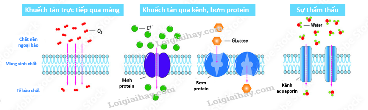 Vận chuyển thụ động được thực hiện bằng 2 con đường: khuếch tán trực tiếp qua màng sinh chất và khuếch tán qua các kênh, bơm protein.