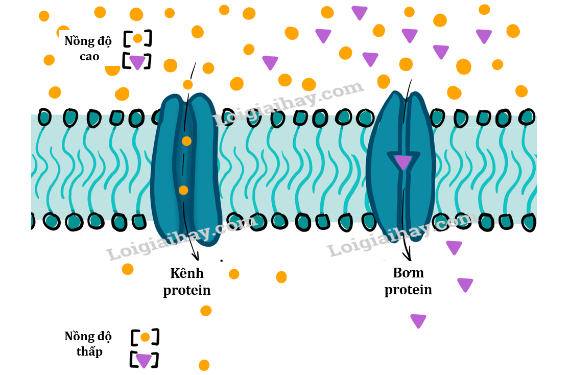 Các chất có kích thước lớn, phân cực, tan trong nước được vận chuyển nhờ các kênh và bơm protein. Mỗi kênh protein chỉ vận chuyển một chất có cấu trúc phù hợp.