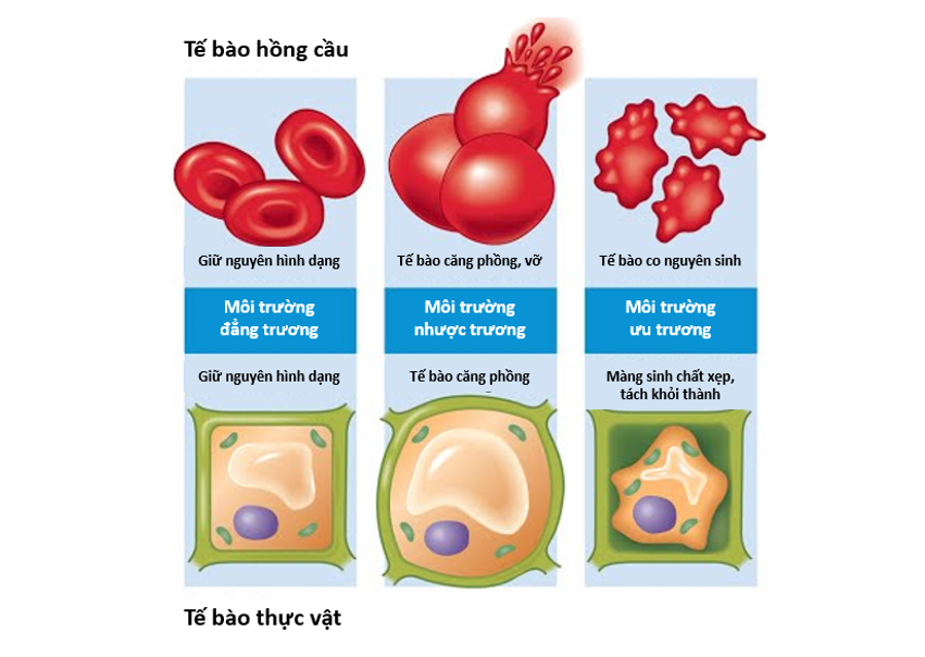Dựa vào sự chênh lệch nồng độ chất tan trong và ngoài tế bào, người ta chia ra 3 loại môi trường: