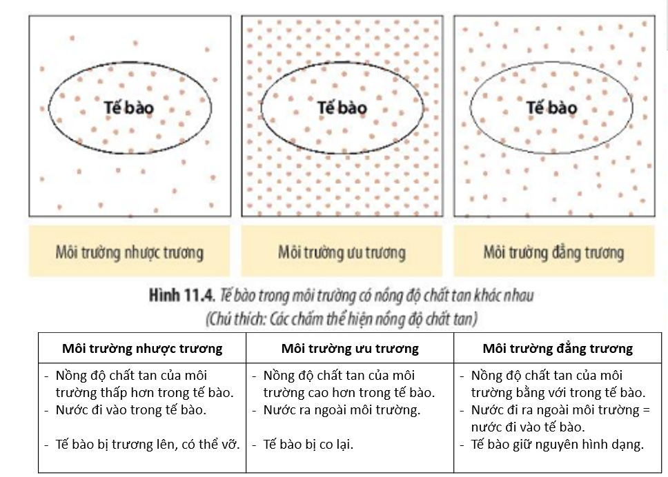 Dựa vào sự chênh lệch nồng độ chất tan trong và ngoài tế bào, người ta chia ra 3 loại môi trường: