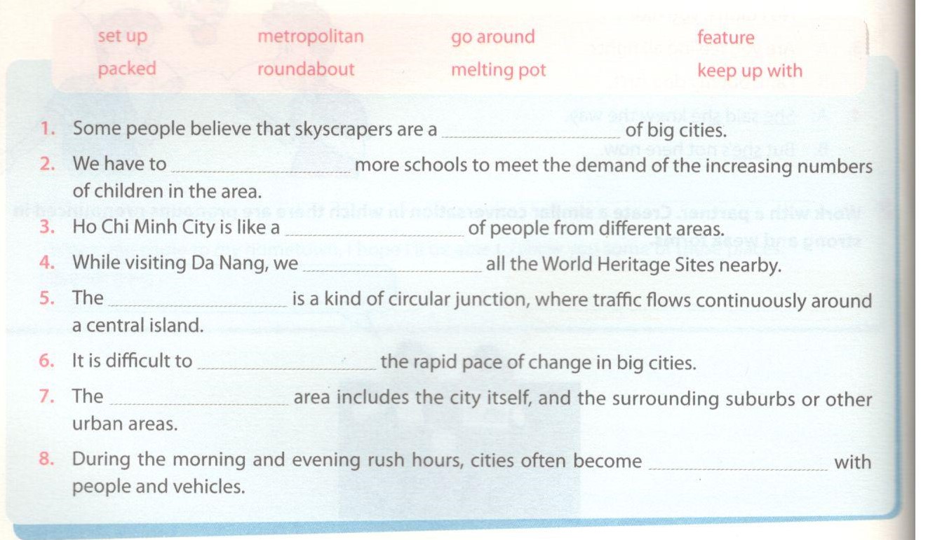 (Hoàn thành những câu sau với từ và cụm từ từ danh sách dưới đây. Thay đổi nếu thấy cần thiết.)