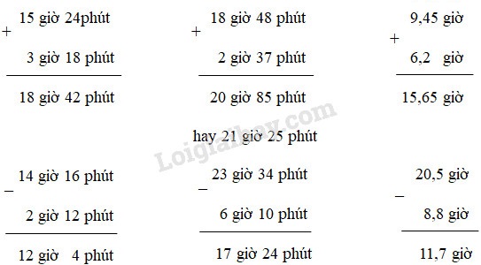 1 giờ 45 phút – 15 phút = 1 giờ 30 phút