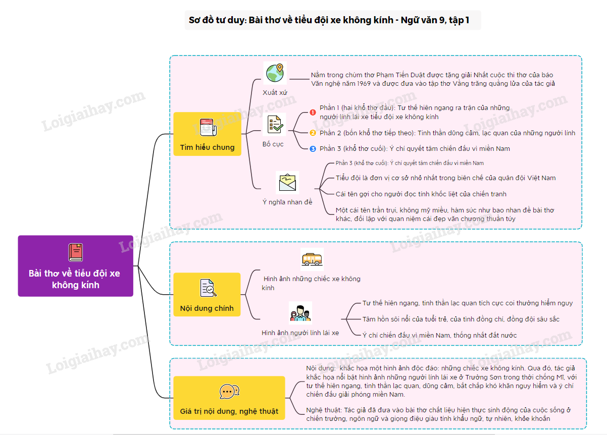 Sơ đồ tư duy về bài thơ “Bài thơ về tiểu đội xe không kính”:
