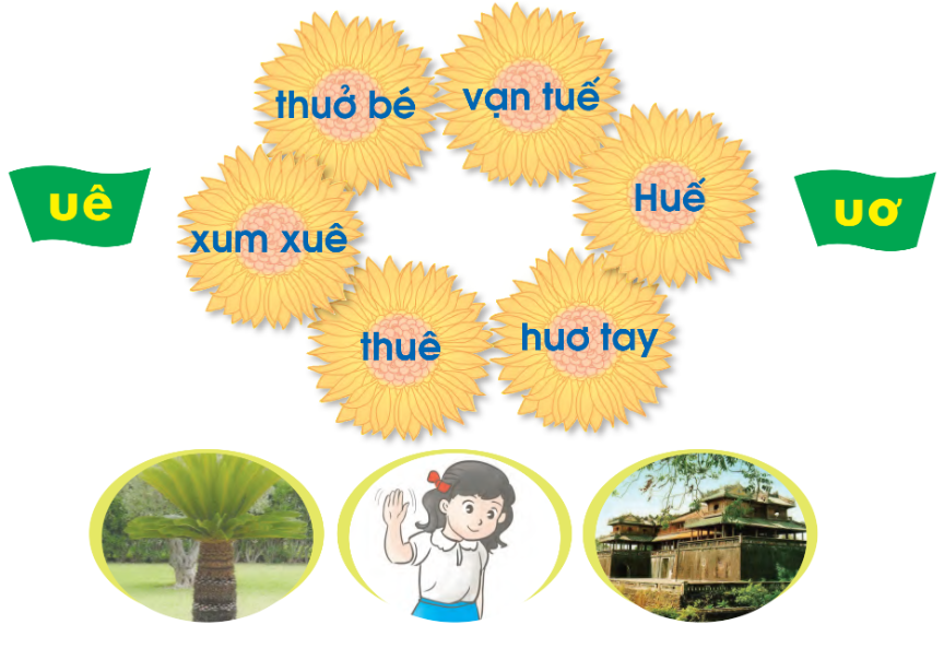 Những bông hoa có tiếng chứa vần uê là: vạn tuế, xum xuê, thuế, Huế