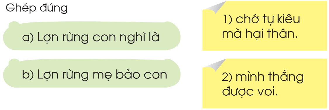 Gặp voi vừa đi vừa huơ vòi, nó nghĩ: “Voi to nhưng ngờ nghệch lắm”. Thế là nó nhằm voi xông tới. Nào ngờ, voi huơ vòi nhấc bổng lợn lên, ném xuống vệ đường.