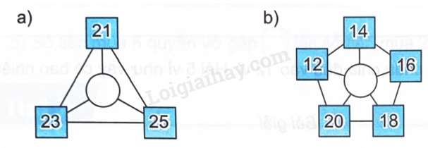 Viết số thích hợp vào mỗi hình tròn, biết số ghi ở hình tròn bằng trung bình cộng của các số ghi ở hình vuông.