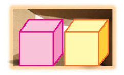Trong hộp có hai khối lập phương màu hồng và màu vàng (xem hinh).