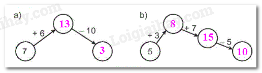 Tính nhẩm kết quả các phép tính theo chiều mũi tên rồi viết kết quả thích hợp vào ô trống.