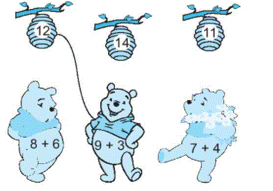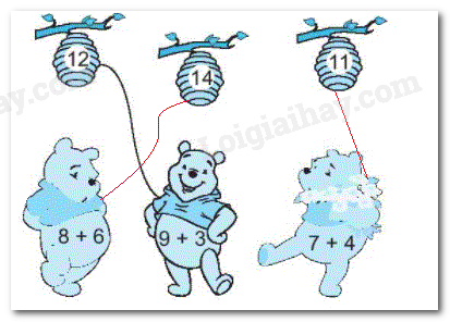 – Tính nhẩm kết quả phép tính ghi trên mỗi chú gấu rồi nối với số thích hợp.