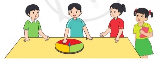 Bình quay đĩa tròn một lần. Khi vòng quay dừng lại thì chiếc kim sẽ chỉ vào một phần đĩa tròn đã tô màu. Sử dụng các từ “chắc chắn”. “có thể”, “không thể” để mô tả cho khả năng chiếc kim chỉ vào phần màu vàng khi đĩa tròn dừng lại.