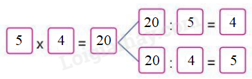 Từ đó em viết phép nhân và phép chia vào ô trống.
