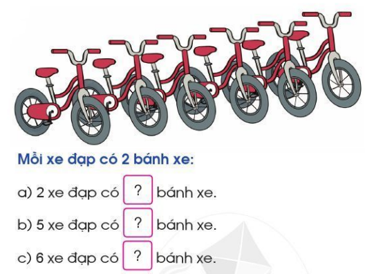 Để tính số bánh xe ta lấy số chiếc xe đạp nhân với 2.