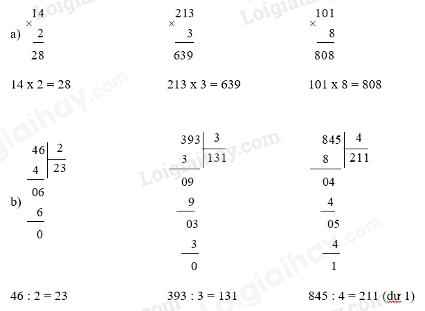 b) Đặt tính và thực hiện chia theo thứ tự từ trái sang phải.