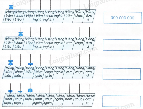 b) Đếm thêm 100 000 000 rồi điền số còn thiếu vào chỗ trống.