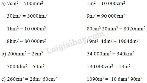 Giải bài tập 1, 2, 3 trang 34 VBT toán 5 bài 25 : Mi-li-mét vuông. Bảng đơn vị đo diện tích với lời giải chi tiết và cách giải nhanh, ngắn nhất