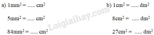 1cm2 = 100mm2 hay 1mm2 = \( \displaystyle {1 \over {100}}\)cm2 ;
