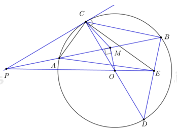 Cho đường tròn tâm O và điểm P nằm ngoài (O). Vẽ tiếp tuyến PC của (O) (C là tiếp điểm) và cát tuyến PAB (PA < PB) sao cho các điểm A, B, C nằm cùng phía so với đường thẳng PO. Gọi M là trung điểm của đoạn AB và CD là đường kính của (O).