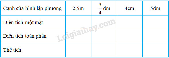 +) Hình lập phương có cạnh là 2,5m.