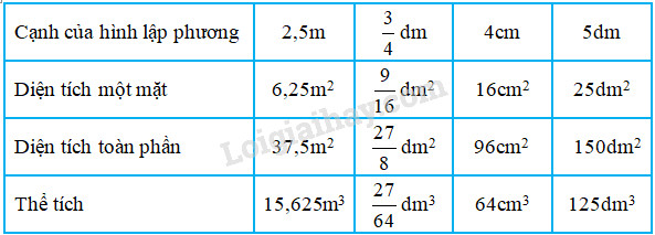 Giải bài tập 1, 2, 3 trang 36, 37 VBT toán 5 bài 115 : Thể tích hình lập phương với lời giải chi tiết và cách giải nhanh, ngắn nhất