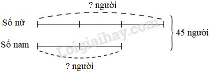 Một đội trồng cây có 45 người, trong đó số nam bằng \(\displaystyle {2 \over 3}\) số nữ. Hỏi đội đó có bao nhiêu nam, bao nhiêu nữ ?