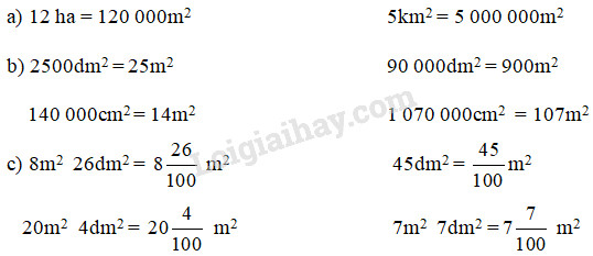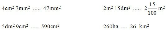 Viết các số đo sau dưới dạng số đo có đơn vị là mét vuông :