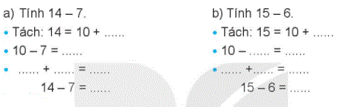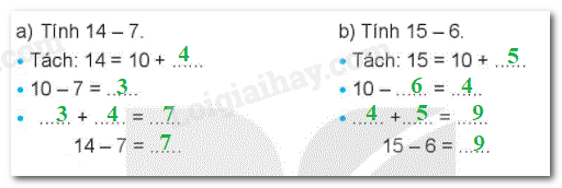 Tách các số 14 và 15 theo mẫu rồi điền các số còn thiếu vào chỗ trống cho thích hợp.